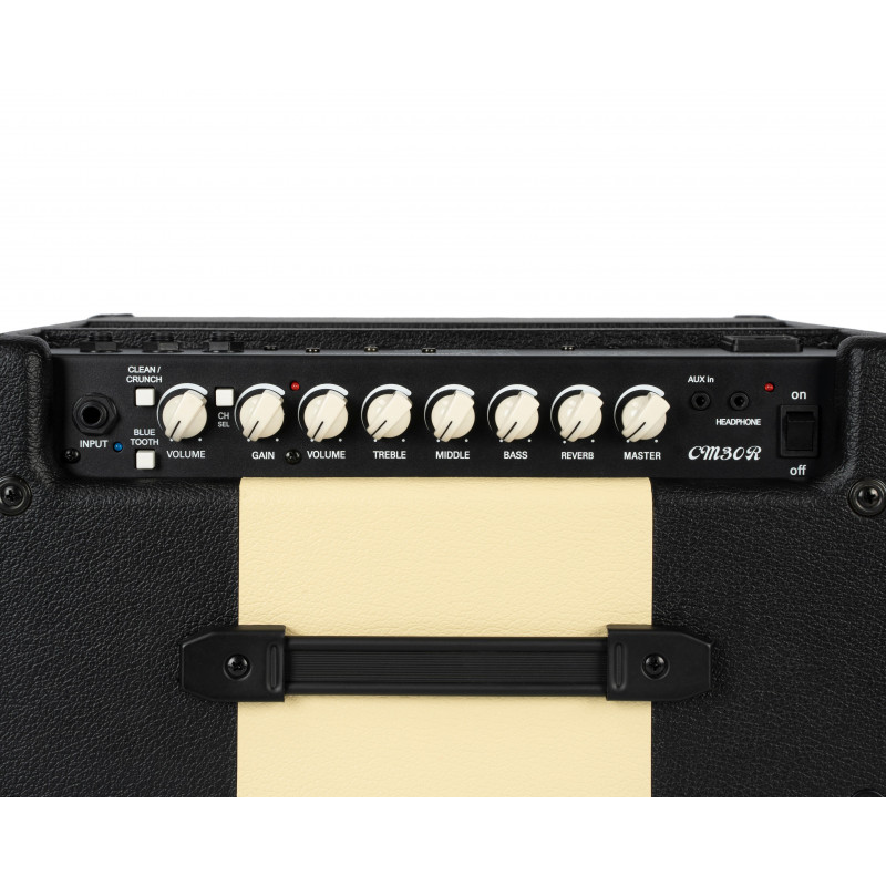 AMPLIFICADOR COMBO PER A GUITARRA El nou CM30R ofereix el mateix nou disseny exterior millorat que el 15R però amb el doble de potència de sortida per als músics que necessiten un amplificador compacte però potent per practicar amb una banda sorollosa i tocar en recintes més petits.