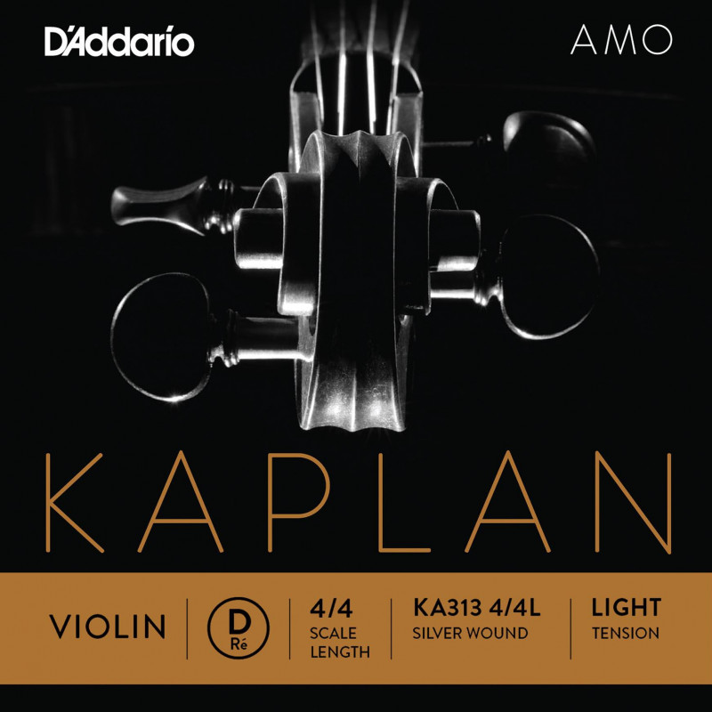 CUERDA SUELTA PARA VIOLIN Cuerda para violín D'Addario Kaplan Amo KA313 4/4Light Re (D) con entorchado plateado. Kaplan Amo ofrece calidez, riqueza y flexibilidad para los instrumentos más brillantes, se asientan rápidamente, exhibiendo una rica paleta de colores tonal y una excelente respuesta de arco.