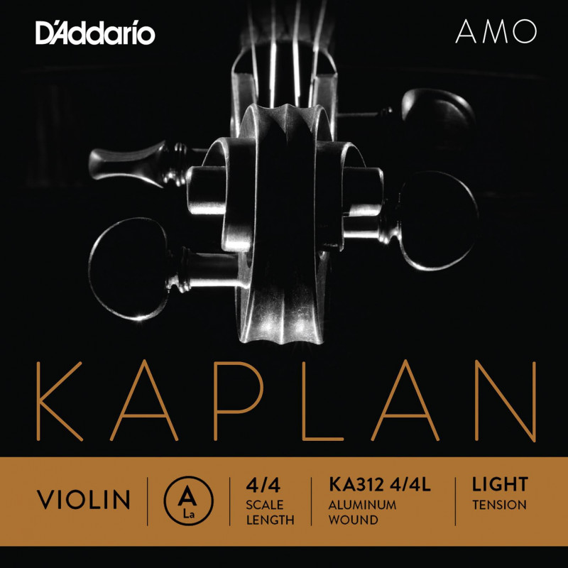 CUERDA SUELTA PARA VIOLIN Cuerda para violín D'Addario Kaplan Amo KA312 4/4Light La (A) con entorchado de aluminio. Kaplan Amo ofrece calidez, riqueza y flexibilidad para losinstrumentos más brillantes, se asientan rápidamente, exhibiendo una rica paleta de colores tonal yuna excelente respuesta de arco.