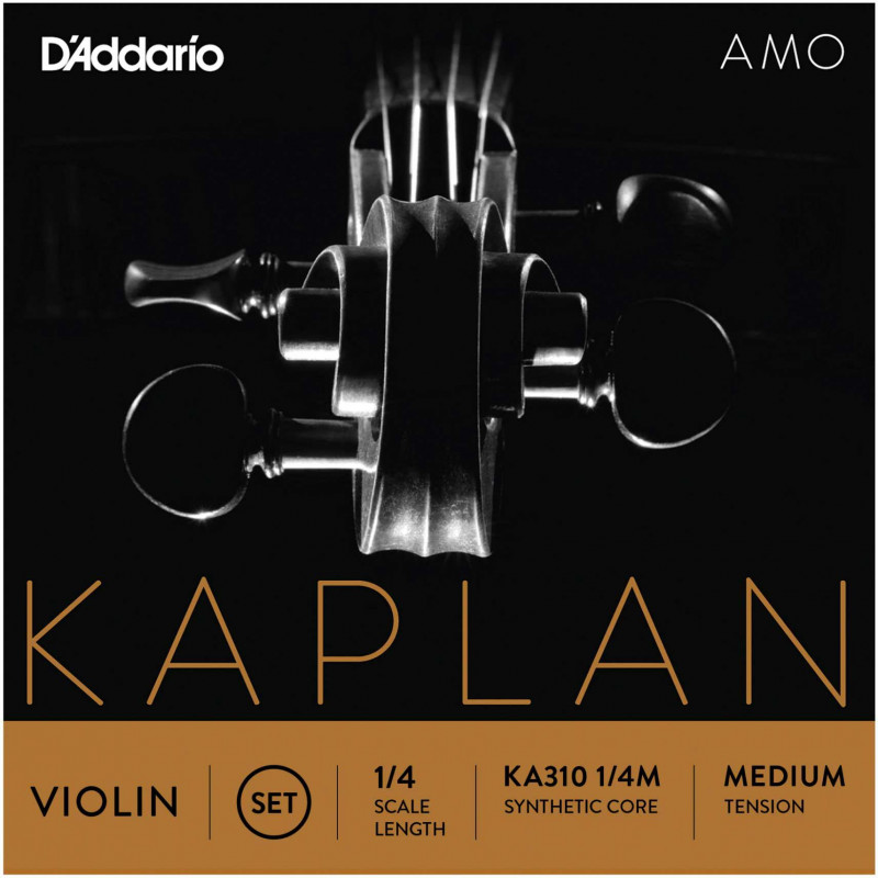 JUEGO CUERDAS PARA VIOLIN Juego de cuerdas para violín Kaplan Amo KA310 1/4 Medium. Kaplan Amo ofrece calidez, riqueza y flexibilidad para los instrumentos más brillantes, se asientan rápidamente, exhibiendo una rica paleta de colores tonal y una excelente respuesta de arco.
