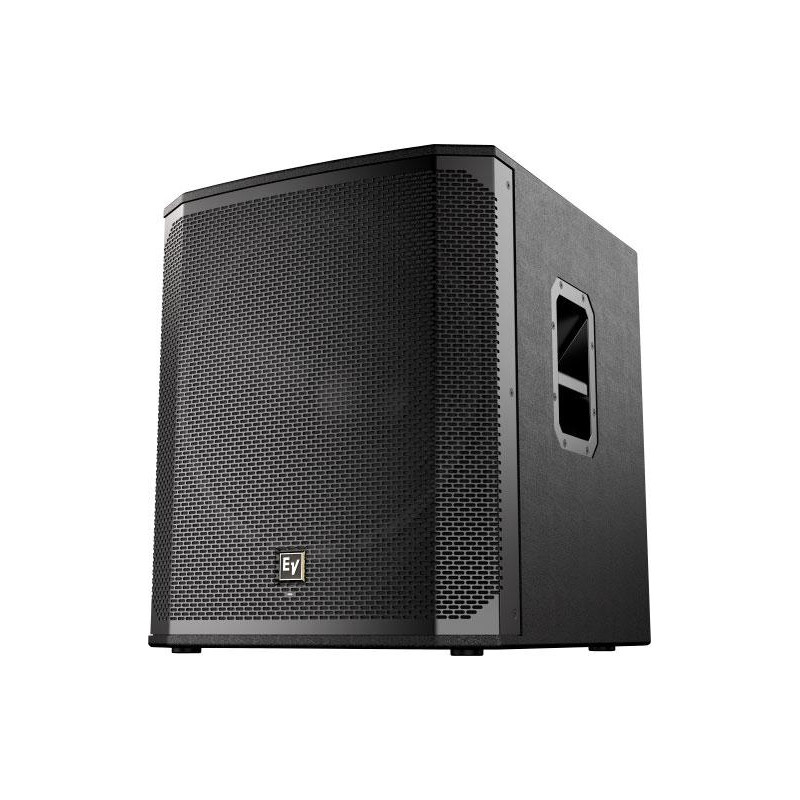 SUBWOOFER PARA PA (AUTOAMPLIFICADO) Módulo de subgraves autoamplificado diseñado comorefuerzo de bajas frecuencias de los sistemas full range de la Serie ELX200. Recinto con forma rectangular, construido con tablero contrachapado de abedul de 15 mm, internamente reforzado, recubiertocon EVCoat, acabado en color negro. Permite control y monitorización de hasta 6 sistemas simultáneamente mediante aplicación QuickSmart Mobile para iOS y Android, recibiendo notificaciones inmediatasen condiciones de funcionamiento crítico. Incluyedos (2) asas para transporte y soporte para mástil de altavoz (M20). Incorpora módulo de amplificación Clase D de 1.200W con QuickSmart DSP, pantallaLCD y encoder asociado. Dispone 2 entradas MIC/LINE (Combo XLR-Jack¼'), 2x salidas paralelas (XLR).VLF: 1x altavoz con cono de 18' (EVS-18L). Respuesta - 10dB: 40Hz - 145Hz. Máx SPL: 132dB. Consumo de potencia: 100 - 240 V, 50 - 60 Hz, 1,8 A. Dimensiones (HxWxD): 600 x 507 x 574 mm. Peso: 29,0 kg.