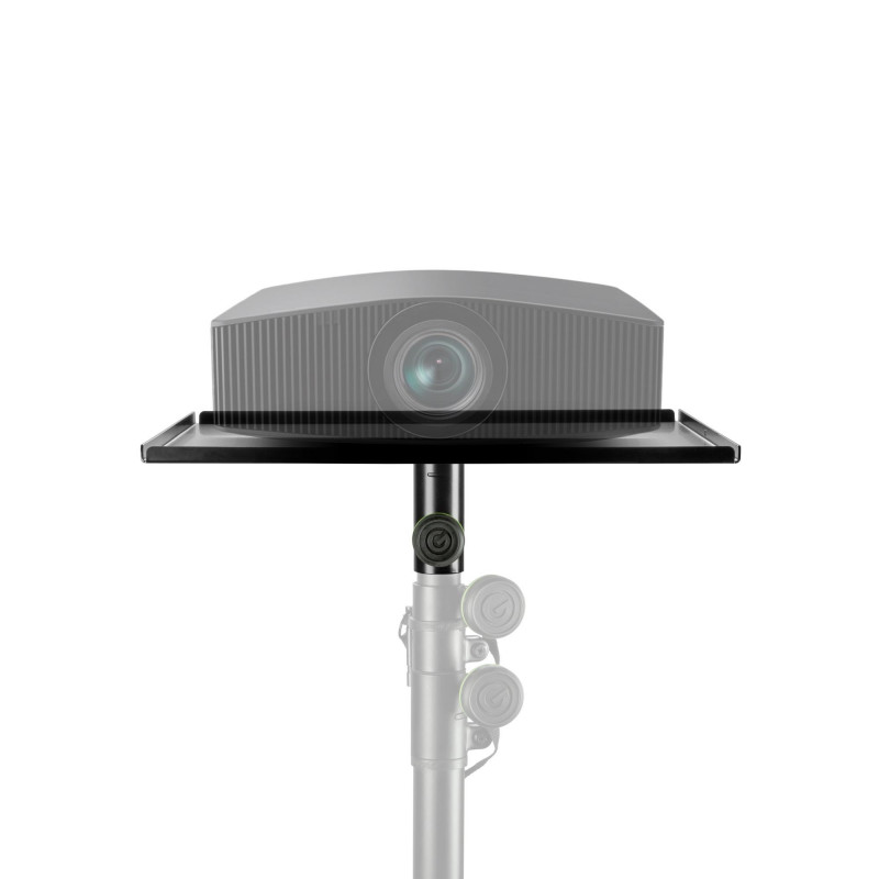 This convenient tray mounts to any 35 mm diameter pole and converts standard speaker stands into a multimedia projector stand. Providing a flat surface of 42 x 38 cm, it also accomodates laptops, blue-ray players, monitor speakers and other equipment up to 30 kg weight. The strong all-steel construction features a 10 mm lip around the edges to add rigidity and prevent items from falling off.