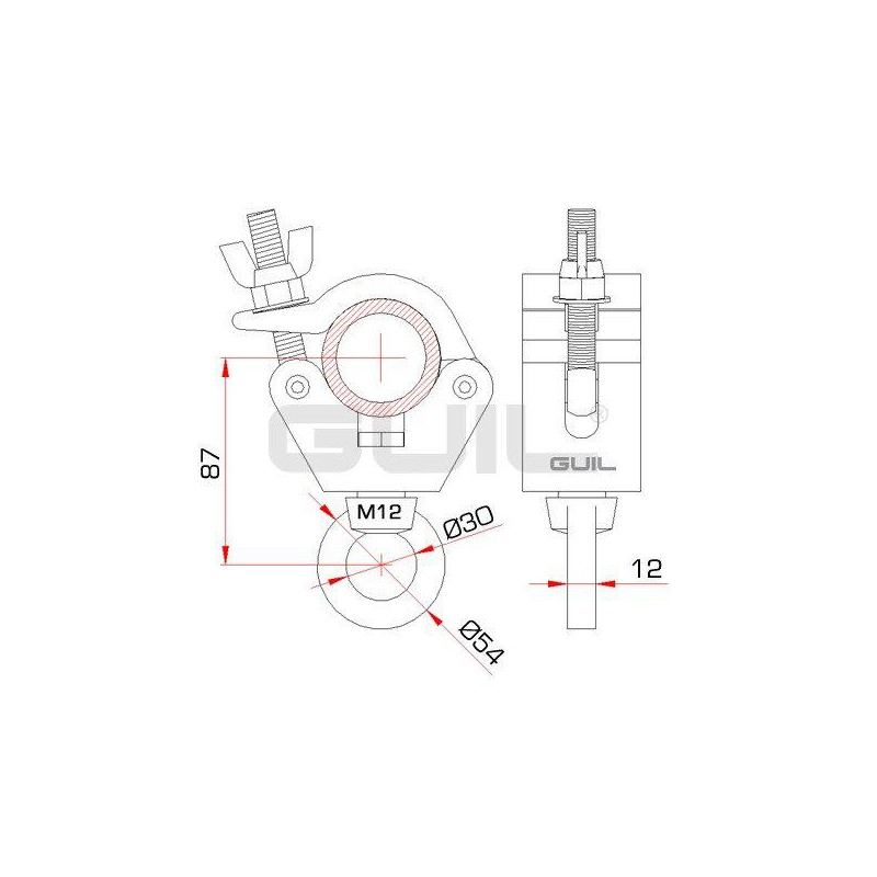 - La argolla está asegurada a la abrazadera mediante un tornillo de M12 / 8.8.