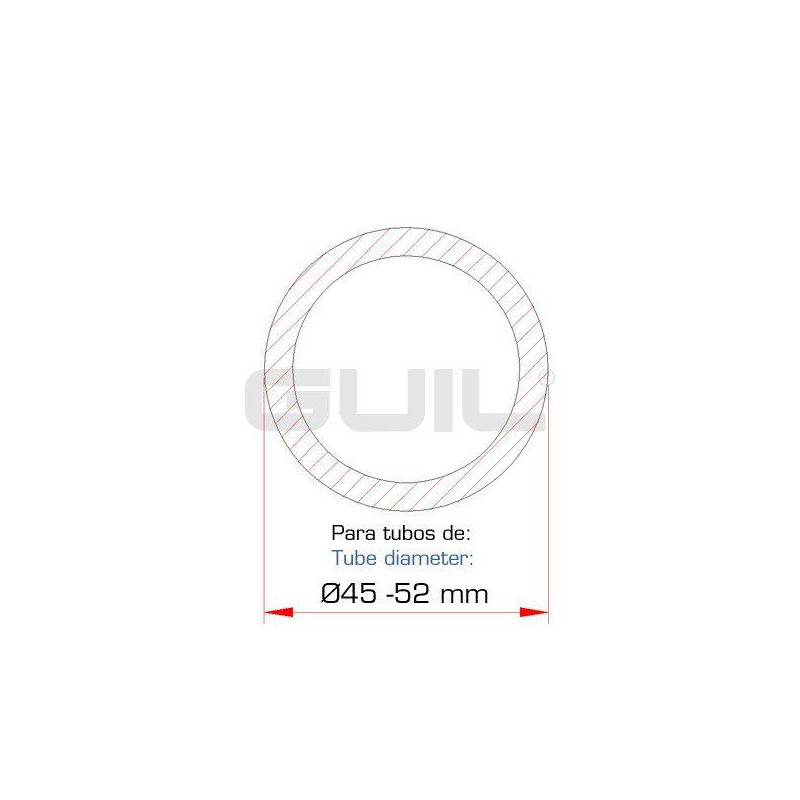 - Diseñada para una fijación segura a tubos con diámetro externo desde 45 mm a 52 mm.