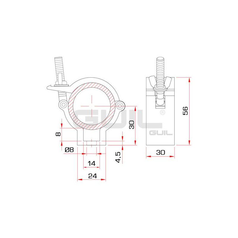 - Dissenyada per a una fixació segura a tubs amb diàmetre extern des 35 a 40 mm.