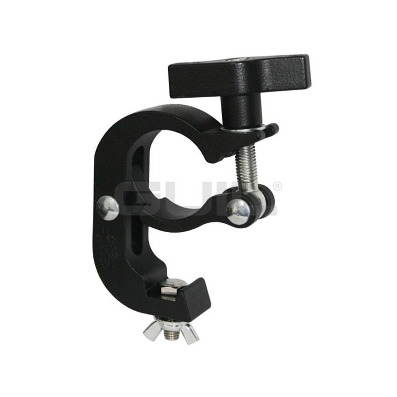 - Práctica abrazadera de aluminio polivalente, se utiliza en múltiples sectores (construcción, espectáculo, etc).