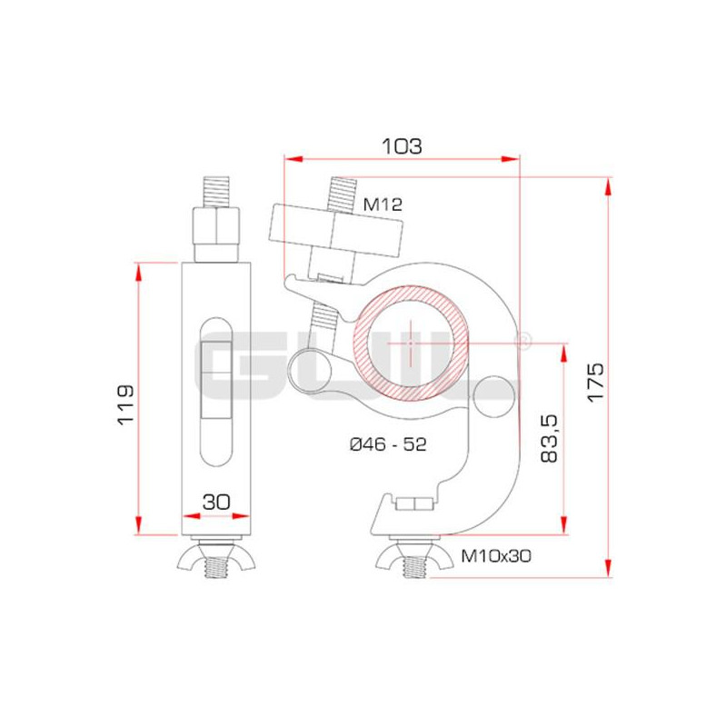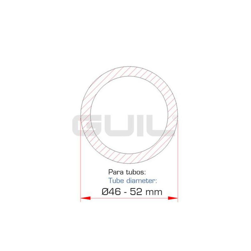 - Diseñada para una fijación segura a tubos con diámetro externo desde 46 mm a 52 mm.