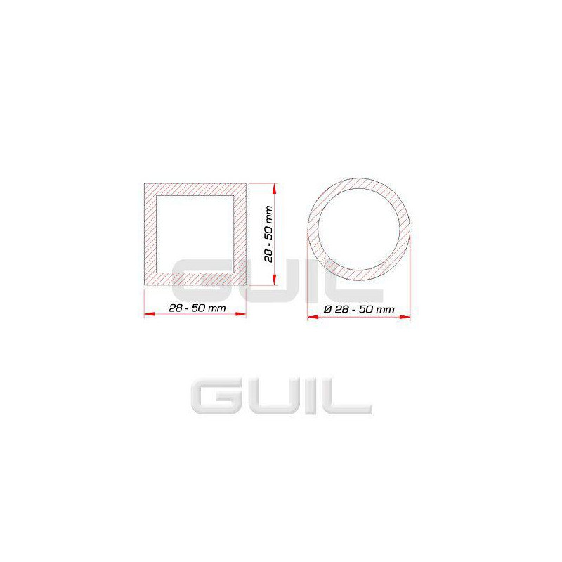 - Dissenyada per a una fixació segura de tubs amb diàmetre extern des de 28 mm a 50 mm.