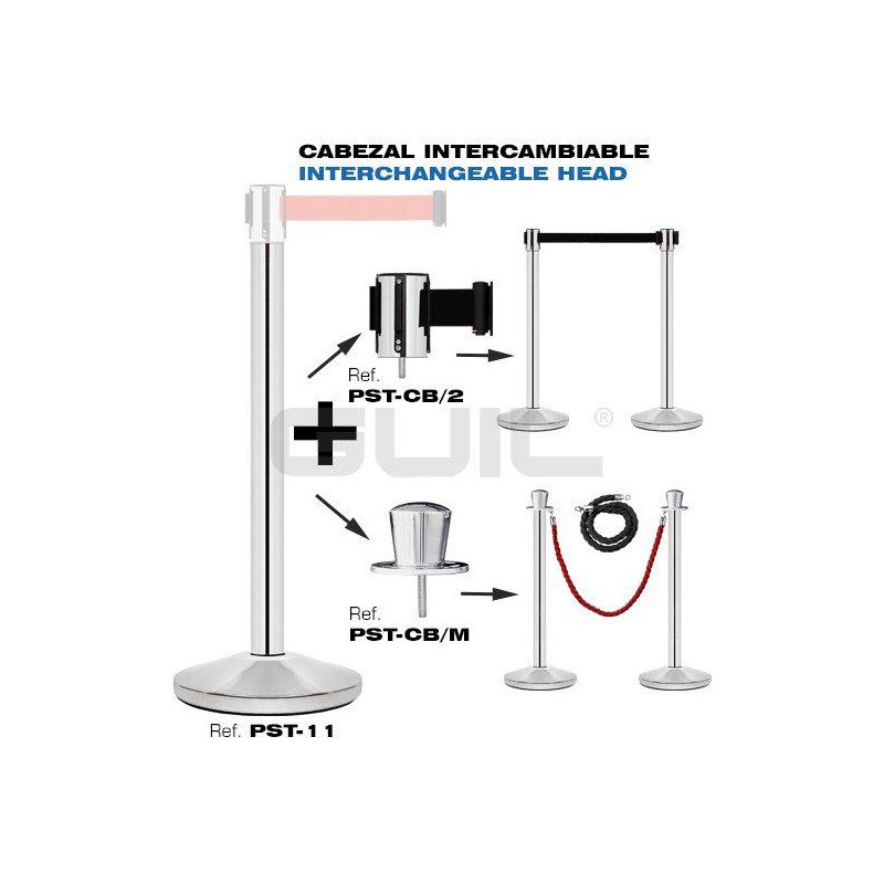 IMPORTANTE: Se puede intercambiar el cabezal por uno de cinta negra (PST-CB/2) o de cordón (PST-CB/M) utilizando un solo poste.
