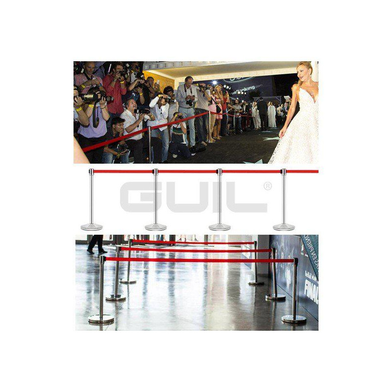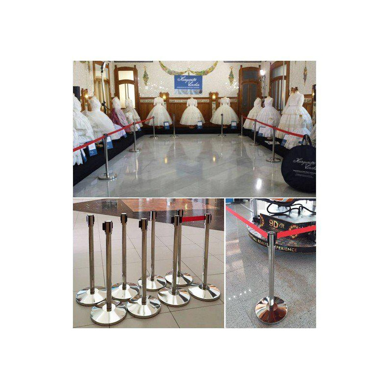 Postes separadores fabricados en acero inoxidable diseñados para el guiado peatonal y la separación de espacios donde hay una gran afluencia de público: bancos, espectáculos, aeropuertos, hoteles, centros comerciales, exposiciones...