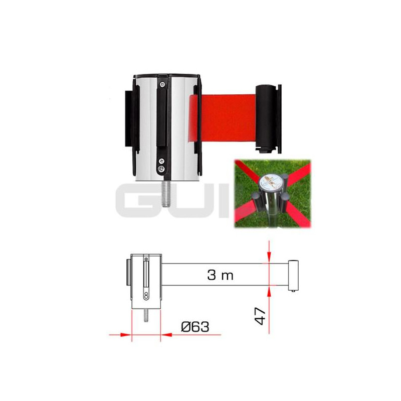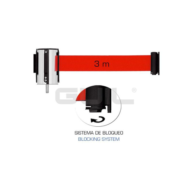 PST-CB/1 Cabezal con cinta retráctil de 3 m en color rojo para su colocación en nuestros postes. Intercambiable