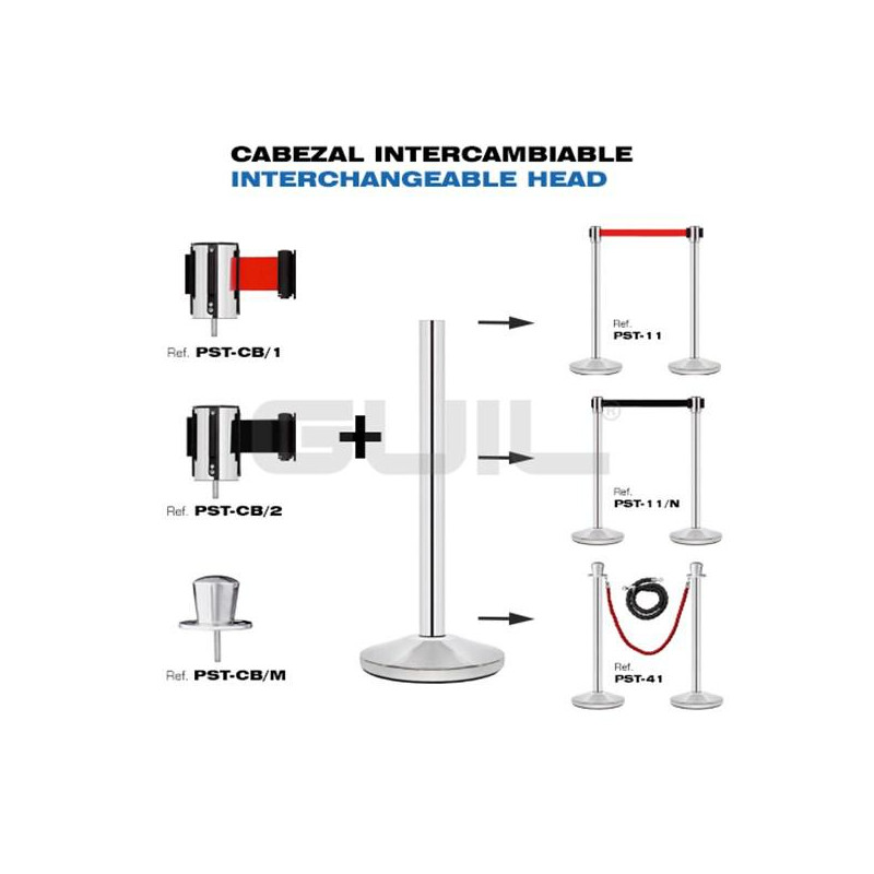 IMPORTANTE: Se puede intercambiar el cabezal por uno de cinta negra (PST-CB/2) o de cordón (PST-CB/M) utilizando un solo poste.