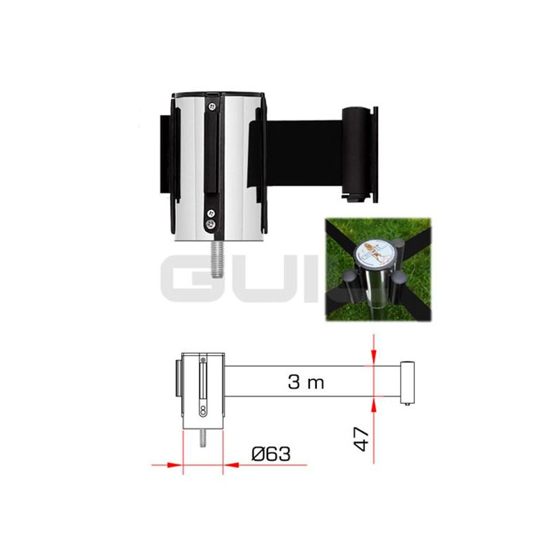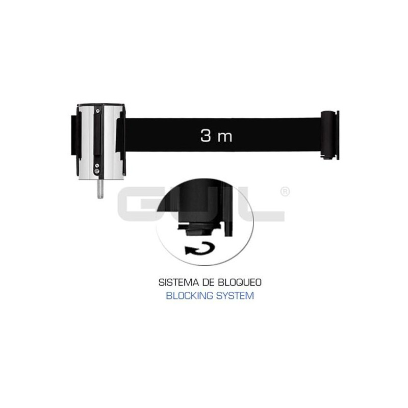 PST-CB/2 Cabezal con cinta retráctil de 3 m en color negro para su colocación en nuestros postes. Intercambiable
