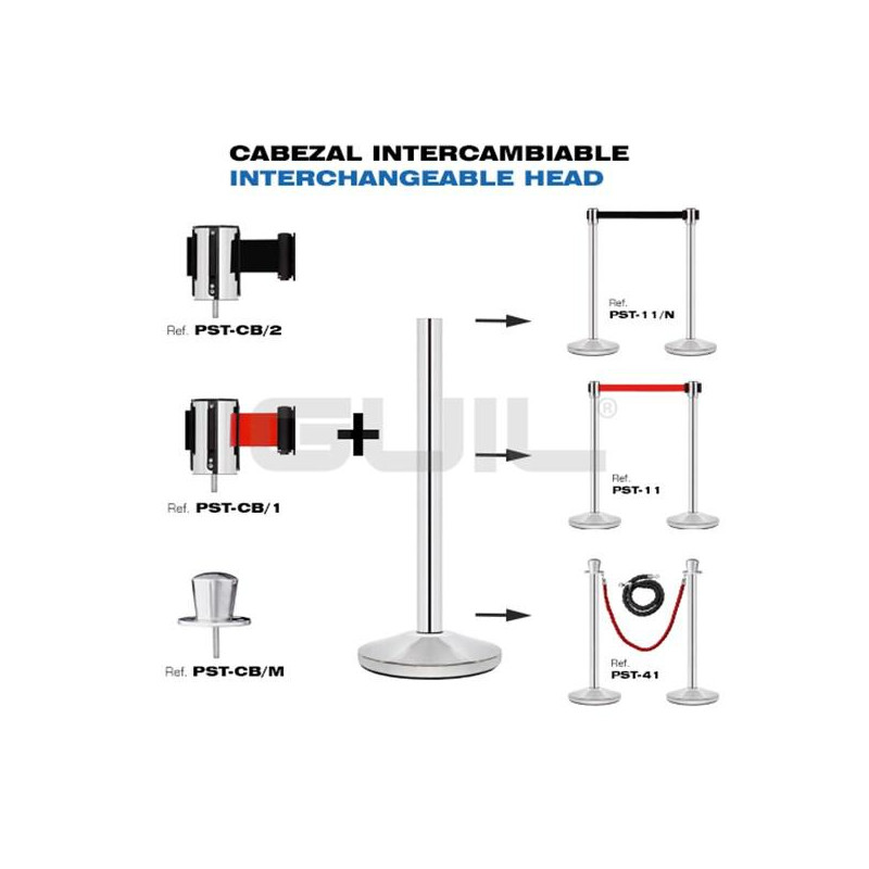 IMPORTANTE: Se puede intercambiar el cabezal por uno de cinta roja (PST-CB/1) o de cordón (PST-CB/M) utilizando un solo poste.