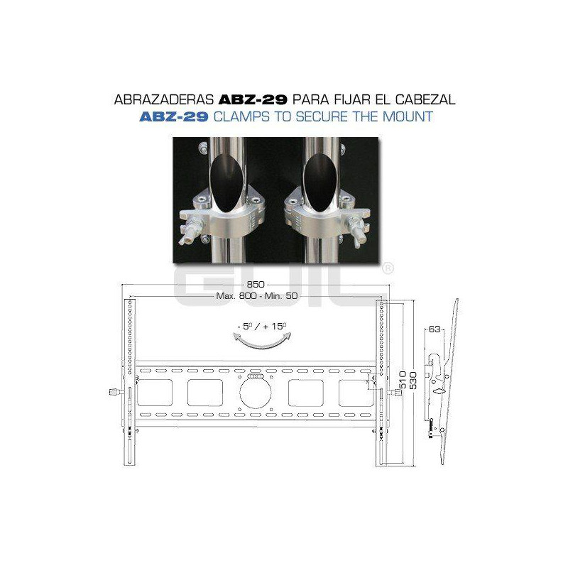 - Es regula en alçada desplaçant el capçal al llarg del doble pal d'acer cromat fixant-lo en qualsevol punt d'aquest mitjançant abraçadores d'alumini (ABZ-29).
