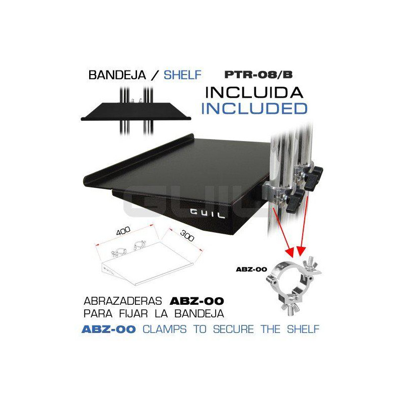 - El suport està proveït d'una safata mòbil (Ref. PTR-08 / B) molt pràctica per a la col·locació de DVD, ordinadors portàtils, projectors, etc. (Fàcil fixació mitjançant doble abraçadora d'alumini, ABZ-00). NOTA: les safates Ref. PTR-08 / B es pot demanar de manera independent.