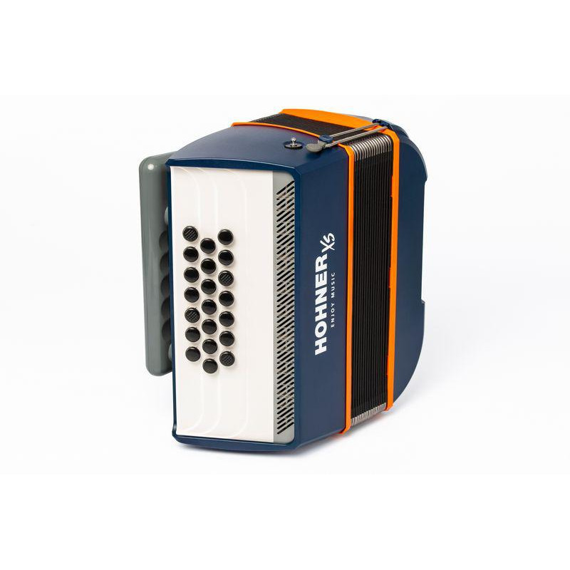 ACORDEÓ DE BOTONS CROMÀTIC NOU! Acordió HOHNER XS. Versió amb teclat de botons. Dissenyat per Hohner especialment per a nens de 4 a 7 anys. Amb un pes un 60% més lleuger que un acordió tradicional, teclat ajustat en un angle ergonòmic i una nova corretja Click'n Play de tipus arnès.