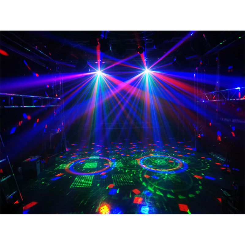 Aquest efecte d'il·luminació ultra-complet us permetrà crear Shows d'il·luminació que omplirà el seu espai de múltiples feixos de llum, feixos i gobos làser, centelleigs de tots els colors i el seu públic quedarà fascinat amb aquests efectes.