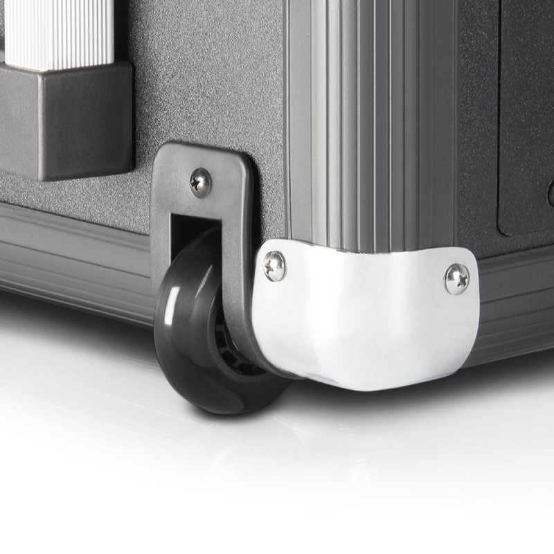 Con ruedas y mango extensible integrados para transportarlo cómodamente, el sistema activo de 2 vías LDRJ10 es el sistema de sonido portátil ideal. Está alimentado por una batería recargable que proporciona hasta 20 horas de funcionamiento continuo, ofrece una respuesta en frecuencia de 90 Hz a 18 kHz y una potencia de pico de 100 W.