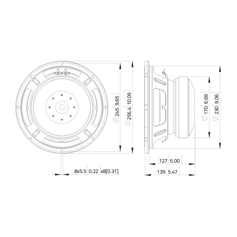 400 W AES, 8 ohmios, 90.5 dB, 50-500 Hz