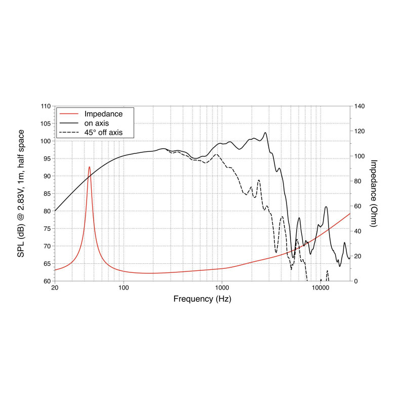 250 W AES, 8 ohmios, 97.5 dB, 45-3000 Hz
