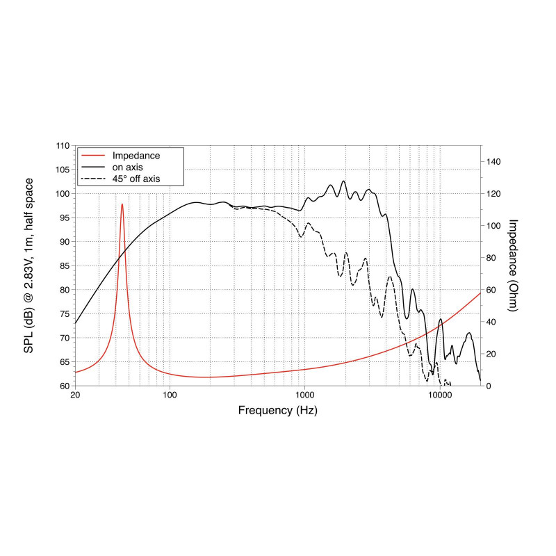 500 W AES, 8 ohmios, 99 dB, 45-3000 Hz