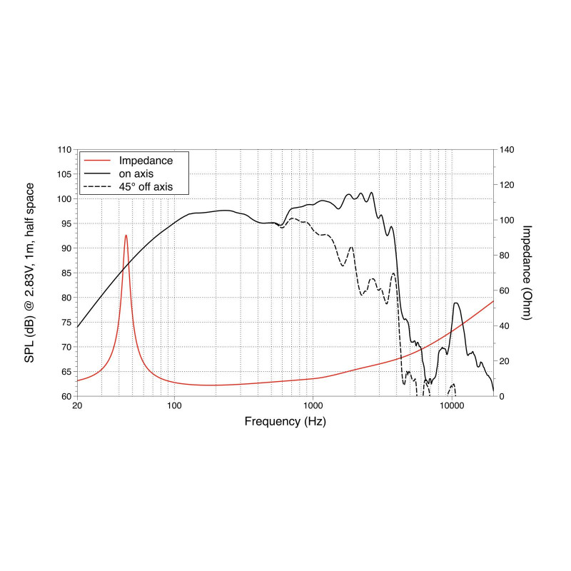 250 W AES, 8 ohmios, 97 dB, 45-3000 Hz