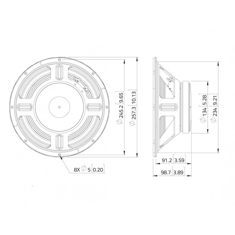 60 W AES, 8 ohmios, 98 dB, 100-6000 Hz
