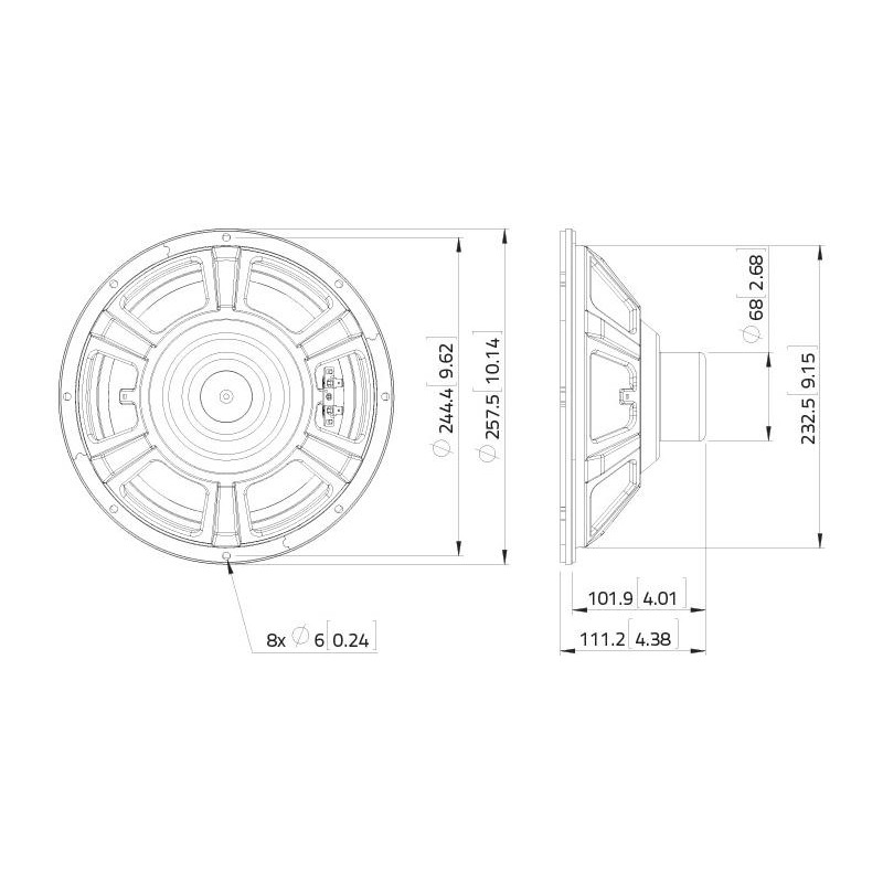 150 W AES, 8 ohmios, 96 dB, 50-5000 Hz