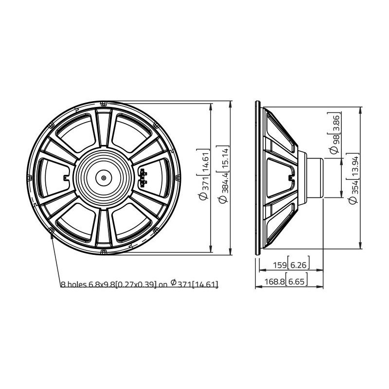 400 W AES, 8 ohmios, 98 dB, 40-4000 Hz