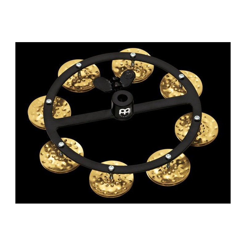 PANDERO / PANDERETA Pandereta para hihat con una fila de jingles en latón. La pandereta hi-hat Meinl HTT1B-BK es una forma ideal de agregar ese sonido de pandereta de charles a tus patrones. Con un simple mecanismo de tuerca de mariposa, la pandereta se fija rápida y fácilmente a la barra de tracción del charles. Revestido con una capa de goma, tus baquetas apenas sufrirán y el sonido será limpio y sin distorsiones.