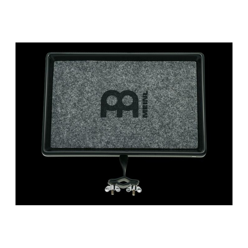 INSTRUMENTO DE PERCUSION 'Mesa para percusión de 18'' x 12'' con grapa para fácil acople. Fabricada en fibra de vidrio ofrece espacio suficiente para varios instrumentos de percusión de mano. Se puede agarras a cualquier pie y la superficie de la bandeja está alfombrada.
