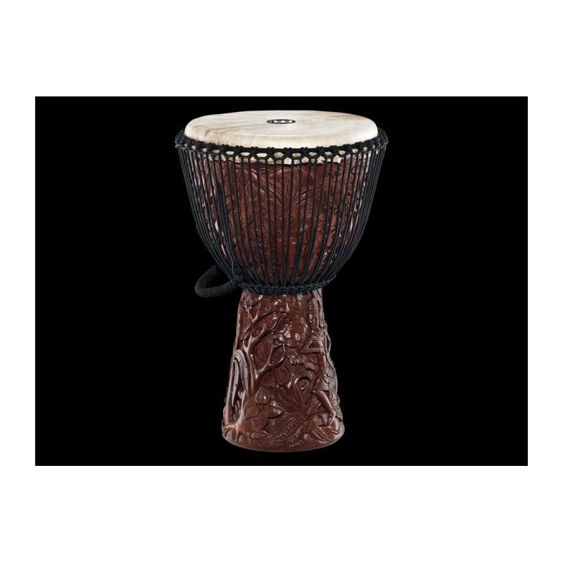 DJEMBE 'Djembé profesional de madera tamaño 14''. Equipado con parches de piel de cabra seleccionadas a mano y cuerdas de afinación de nylon para proporcionar una afinación óptima. Los impresionantes djembes de la serie Profesional de Meinl destacan por su arte gráfico tradicional y exótico tallados a mano desde una pieza sólida de madera.