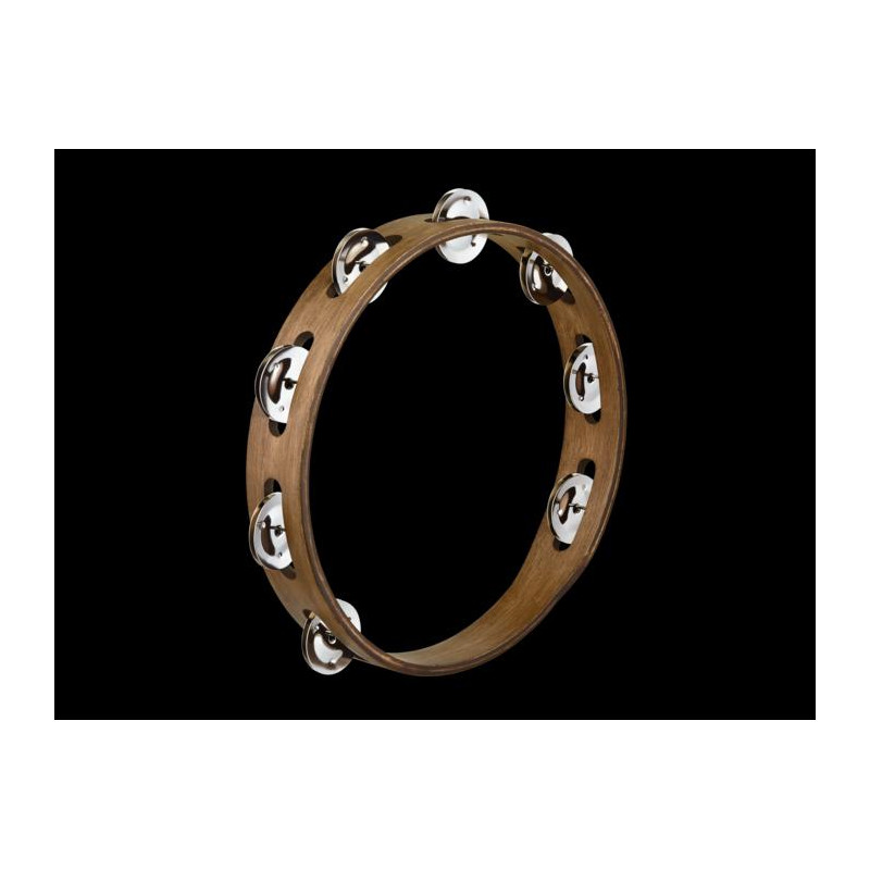 PANDERETA 'Pandereta de madera 10'' de 1 hilera, con sonajas de acero. andereta de madera. 25,4 cm de diámetro. Diseño vintage, acabado en color marrón nogal.