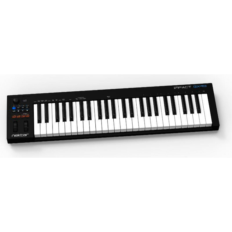 TECLADO CONTROLADOR MIDI-USB Los productos Nektar son sinónimo de perfecta integración con DAW tanto en Mac como en Windows, y los Impact GX49 y GX61 no son una excepción. El diseño compacto es cómodo frente a la computadora. Cuando llega la inspiración, el Impact GX 49 y 61 ofrece el control necesario para capturar ideas mientras están frescas. Compacto. Potente. Control.