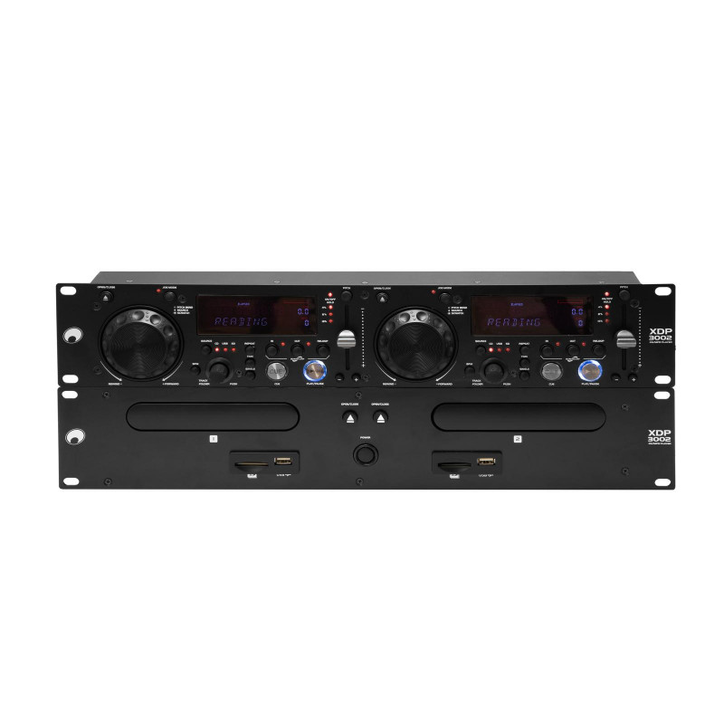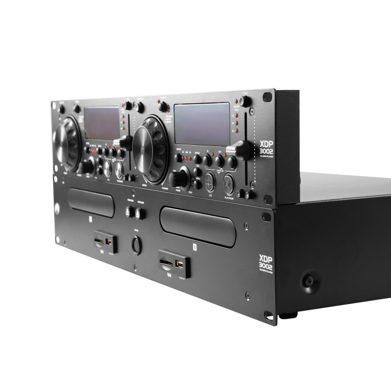 La mezcla de DJ es más fácil El delgado XDP-3002 está diseñado como un reproductor dual fácil de usar para racks de DJ. Las unidades de control y accionamiento del XDP-3002 requieren solo 2 unidades de altura cada una, pero están repletas de características intuitivas como control de tono, igualación de ritmo y bucles continuos. La unidad ofrece funciones de reproducción para CD de audio, CD-R y CD de MP3 a través de dos cubiertas, así como puertos USB y ranuras para tarjetas SD para medios de datos de hasta 64 GB. Su versatilidad no solo lo hace indispensable para los DJ, sino que también es perfecto para la instalación permanente en bares, restaurantes, estudios de baile y tiendas minoristas.