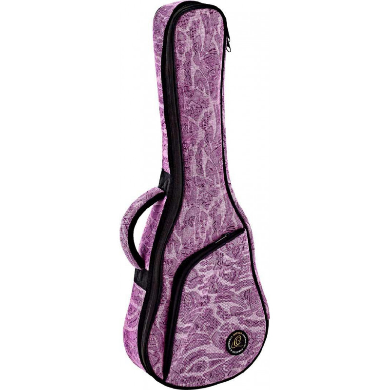 FUNDA PARA UKELELE Funda estampada para ukelele tenor con exterior de algodón estilo ``jean´´ e interior de nylon. 12 mm de acolchado. Con correas estilo mochila. Compartimento frontal. Color Purple Jean
