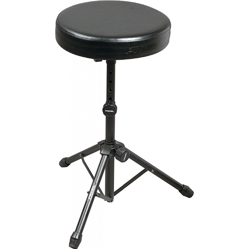 BANQUETA DE PIANO / TECLADO Banqueta Proel SGB85BK. Banqueta multi-uso. Altura regulable, con junta giratoria de metal, asientoacolchado de alta densidad, tres patas plegables con gomas para una colocación estable en el suelo.Asiento: 320 mm diámetro. Base: 540 mm. diámetro.Altura máx: 620 mm. Altura min: 480 mm. Peso: 3,60 Kg. Carga máxima: 120 Kg.