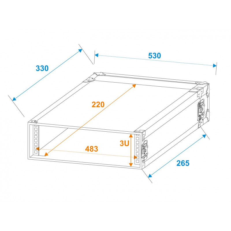 - Rieles de perfil con instalación de montaje para unidades de 483 mm (19 "), p. Ej. Amplificadores PA ligeros, paquetes de potencia, equipos adicionales