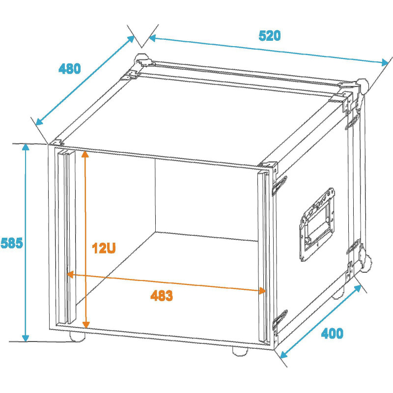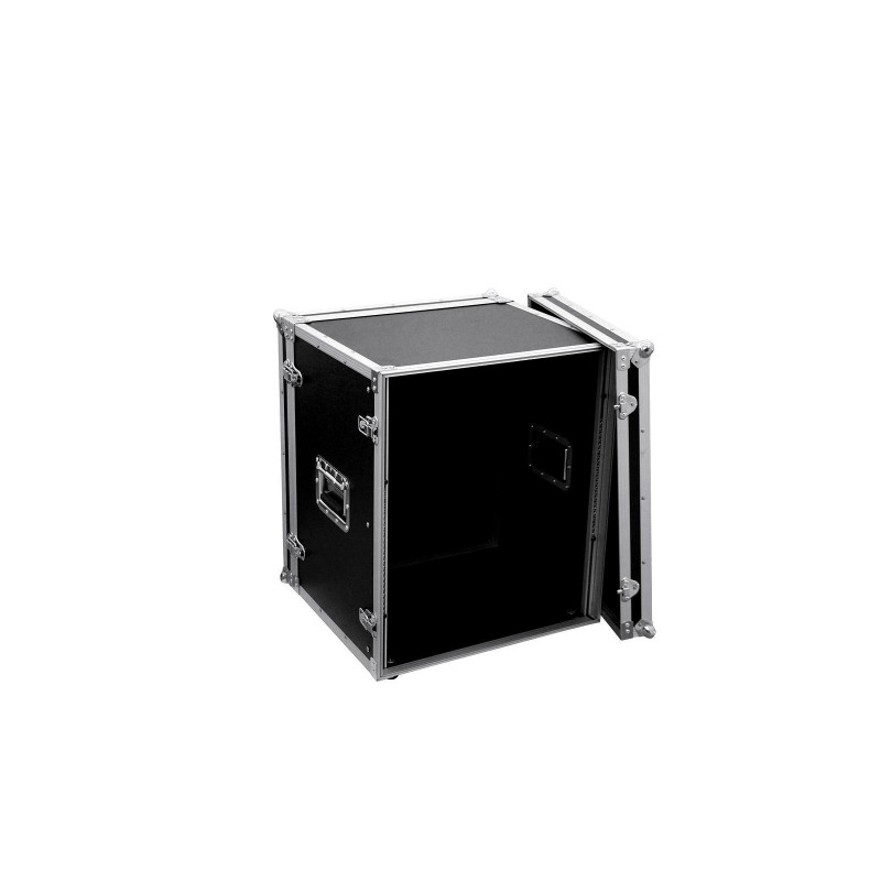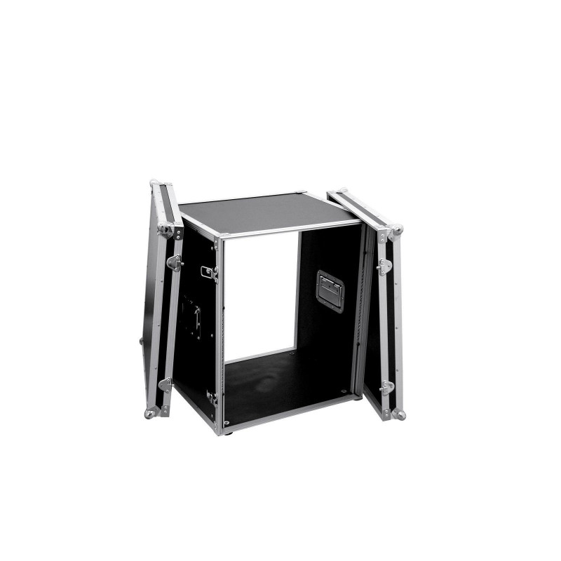 Flightcase para dispositivos de 483 mm (19 ") Transporte sus unidades de control y efectos con un ancho de 483 mm o 19" con el estante de efectos ROADINGER. El estuche de vuelo es estable y de alta calidad, lo que lo hace ideal para uso móvil y el escenario. Las paredes de 6 mm de grosor, el marco de perfil de aluminio con esquinas redondeadas y las esquinas de bolas de acero medianas de tres patas le dan estabilidad a la caja. Las dos tapas de la carcasa son extraíbles (versión de doble puerta). El bastidor de efectos también está equipado con ocho cierres a presión con ojales para bloquear y dos manijas plegables cromadas. Los cuatro grandes pies de goma reforzados con acero proporcionan la estabilidad necesaria. La carga máxima es de 25 kg.