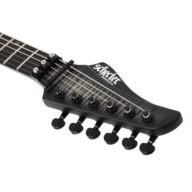 GUITARRA ELÉCTRICA SUPER ST 'Guitarra eléctrica Schecter modelo GT FR S de la serie Banshee en acabado SCB Satin Charcoal Burst (ref: 1525). Preparados... Listos... ¡Ya! Si eres adicto al sustain sin freno, a los solos a máxima velocidad y al mundo del motor y las carreras, entonces la Banshee GT es tu guitarra. La forma reinventada de la Banshee presenta un cuerpo de caoba combinado con una vistosa tapa de arce flameada y decorada con franjas de carreras ''GT'' que invitan a pisar el acelerador a cada nota que tocas. Esta Banshee viene equipada con una pastilla Sustainiac en el mástil, que asegura un sustain infinito, además de una pastilla activa EMG 81 y un puente Floyd Rose Special ''Hot Rod'' que cuenta con detalles de acero inoxidable, brazo de trémolo con anclaje a presión, bloque de trémolo de latón y resortes silenciosos Floyd Rose para conseguir una un sonido afilado y sin ruidos, una afinación perfecta, un sustain definido y una acción ultra suave. Su mástil super cómodo con perfil en ''U'' ultradelgado está fabricado en arce y reforzado con fibra de carbono.Tapa arqueada de arce flameadoMástil encolado con cutaway ultra accessCuerpo de caobaHardware negroPuente Floyd Rose Special ''Hot Rod''Clavijeros SchecterMastil de arce en 3 piezas reforzado con fibra de carbonoDiapasón de ébanoInlays con diseño de números romanosEscala de 25,5 pulgadas24 trastes jumboCejuela Floyd Rose SpecialRadio de 14 pulgadasAlma de doble sentido ajustable con sistema de rueda en traste 24Controles: volumen, tono, intensidad del sistema Sustainiac, selector de pastilla (3 posiciones), selector de encendido para sistema sustainiac (2 posiciones: on y off) y selectro de modo sustainiac (Fundamental, Mix y Harmonic)Pastilla de puente: EMG 81Pastilla de mastil: SustainiacCompartimento para pila de 9 voltios (necesaría para el funcionamiento de pastills EMG activa y de sistema Sustainiac)Estuche no incluído, modelo compatible: Schecter SGR-1C (código: 652829)Fabricada en Indonesia'