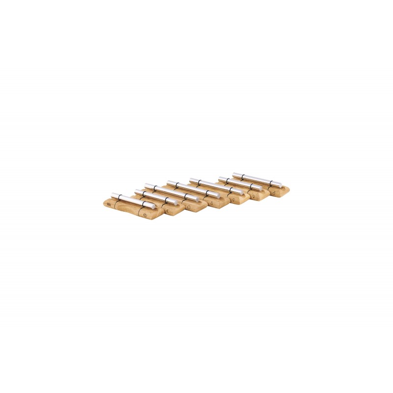BARRAS ENERGÉTICAS EC-SET-CHA-7 Energy Chime - Chakra Set, 7 pcs.. Las barras energéticas Sonic Energy están hechas artesanalmente en Thailanda tomando como base una aleación de alumnio anodizada en plata. La afinación es totalmente precisa y aparece grabada a fuego en la base de madera. Incluye maza de madera.