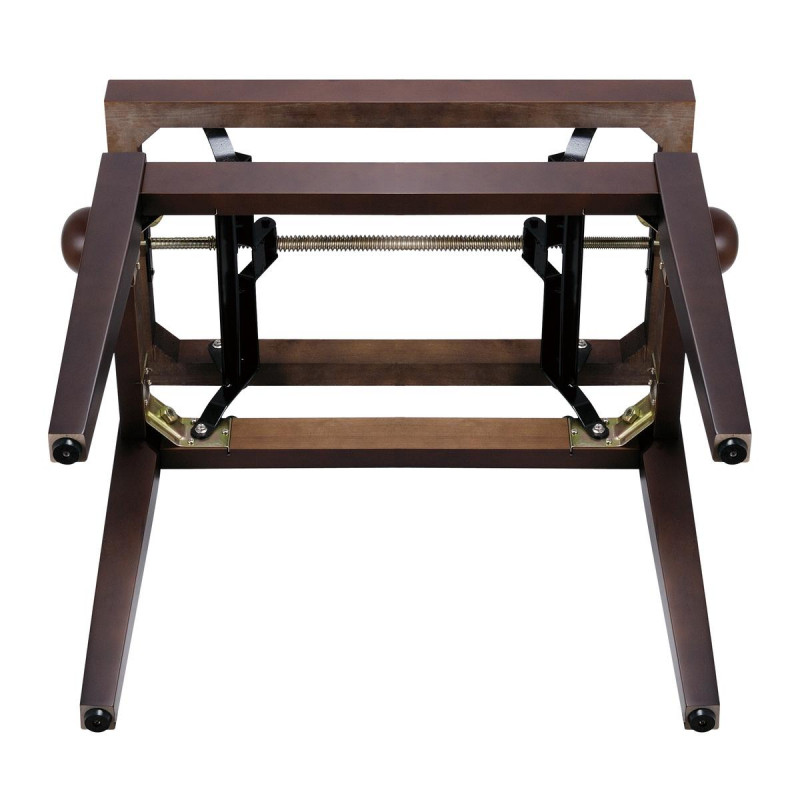 Banco de piano de acabado satinado con asiento de cielo marrón y altura ajustable. Clásico y elegante atractivo.