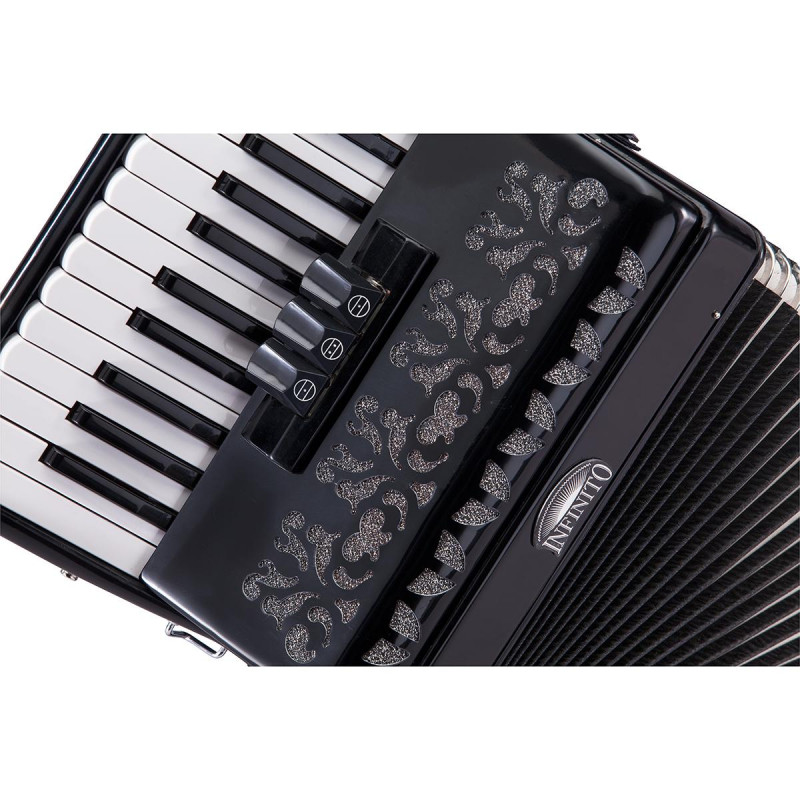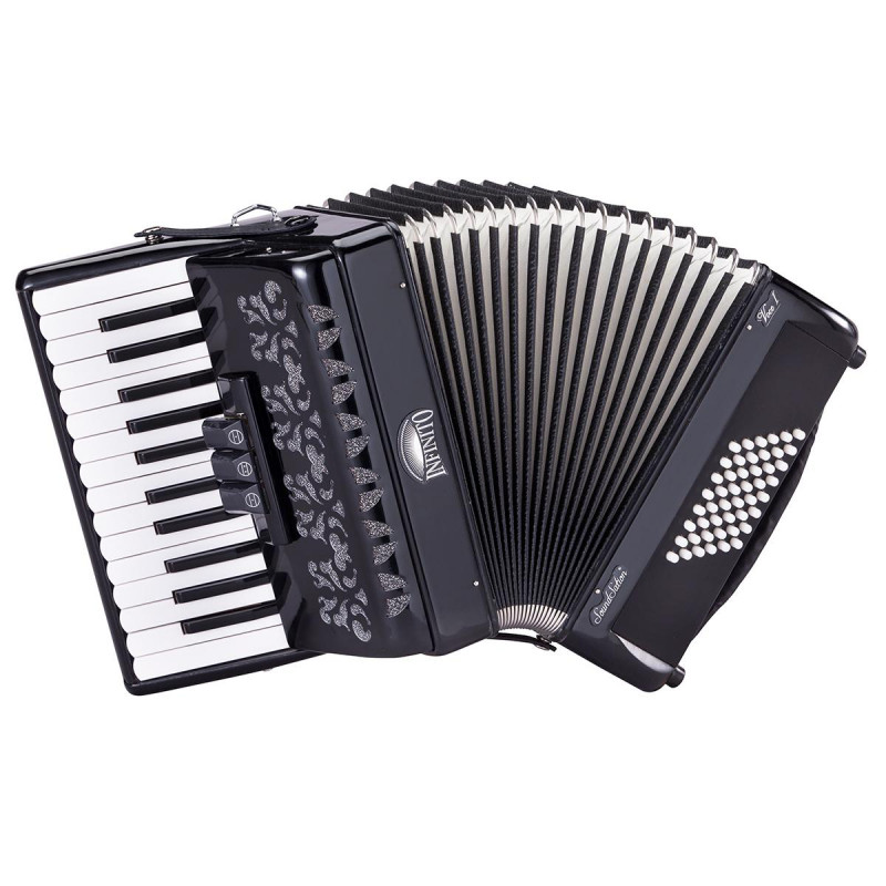 Soundsation presenta su nueva línea de acordeones: Infinito. El nombre Infinito tiene su origen en nuestra tierra natal: la región de "le Marche" en Italia. Nuestra ciudad tiene una larga tradición en la fabricación de acordeones y ha hecho que el acordeón sea famoso en todo el mundo. Diseñada en Italia y construida con supervisión italiana y controles de calidad, la serie Infinito trae instrumentos de nivel de entrada a un nuevo nivel con una relación calidad-precio inigualable. La serie infinito presenta una amplia gama de modelos de 48 a 120 bajos.