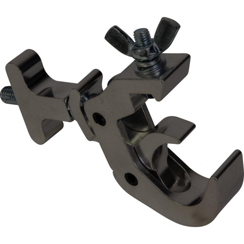 Sturdy aluminum clamp for quick & easy fastening of stage light equipment on a truss system.