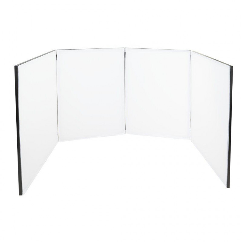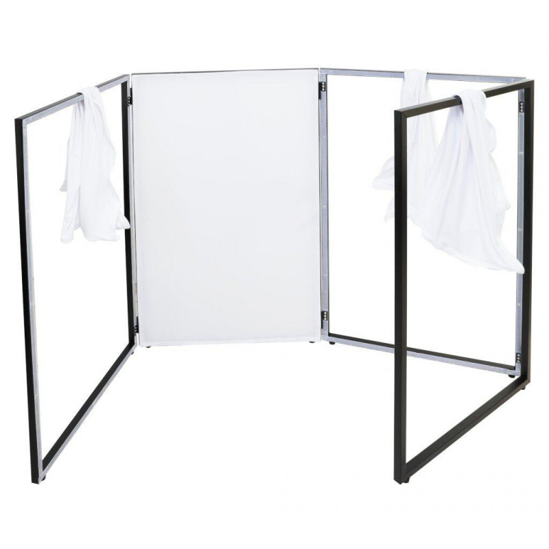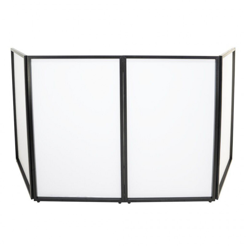 Decorative screen to hide the rear side of the DJ equipment while giving a professional look to your installation. Light up your booth by placing one of the many Ibiza Light LED-bars or strips inside to illuminate the white lycra fabric and bring your FAÇADE-DJ-STAND to life!