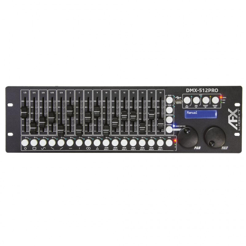 DMX controller for lighting such as moving heads, scanners and LED projectors with RGBW color mixing.