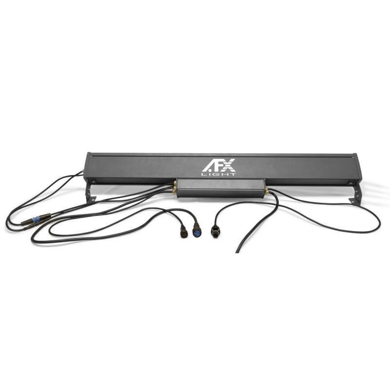 Introducing Waterbar by AFX Light, a mesmerizing lighting experience that brings the tranquility of moving water and the stunning beauty of the Northern Lights to any environment. This innovative product is designed to elevate the outdoor environment with its wavy light effect, creating a dynamic and enveloping atmosphere. The Waterbar has a robust construction with an IP65 rating, ensuring its durability in outdoor environments. With a consumption of 120 W and three powerful 40 W OSRAM 4-in-1 LEDs, this luminaire offers a stunning multicolor light show that imitates the enchanting Northern Lights. Equipped with advanced features, the Waterbar offers versatile control options, including 6 DMX channels, RDM (remote device management), and various operating modes such as DMX512, auto, manual, and master-slave. Users can effortlessly adjust display speed and dimmer settings to customize the lighting experience to their preferences. Safety is a top priority, as the Waterbar incorporates thermal protection for its LEDs, automatically reducing power if temperatures exceed 60°C. In addition, it offers protection against surges and current spikes, ensuring the longevity of the product. The Waterbar offers a wide scanning/projection angle of 120° and features effective heat dissipation through its aluminum housing, contributing to reliable performance. Easy to install thanks to its mounting bracket, this lighting solution offers a color rendering index of 90, ensuring a vivid and realistic representation of colors. Immerse yourself in the captivating world of light and water with the AFX Light Waterbar, a fusion of cutting-edge technology and artistic design, perfect for creating unforgettable outdoor experiences.
