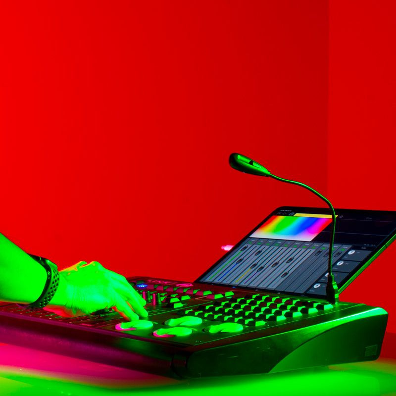 • 8 Rotary Dials with Push-In Selection Above Faders