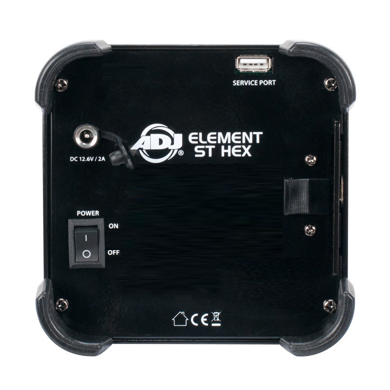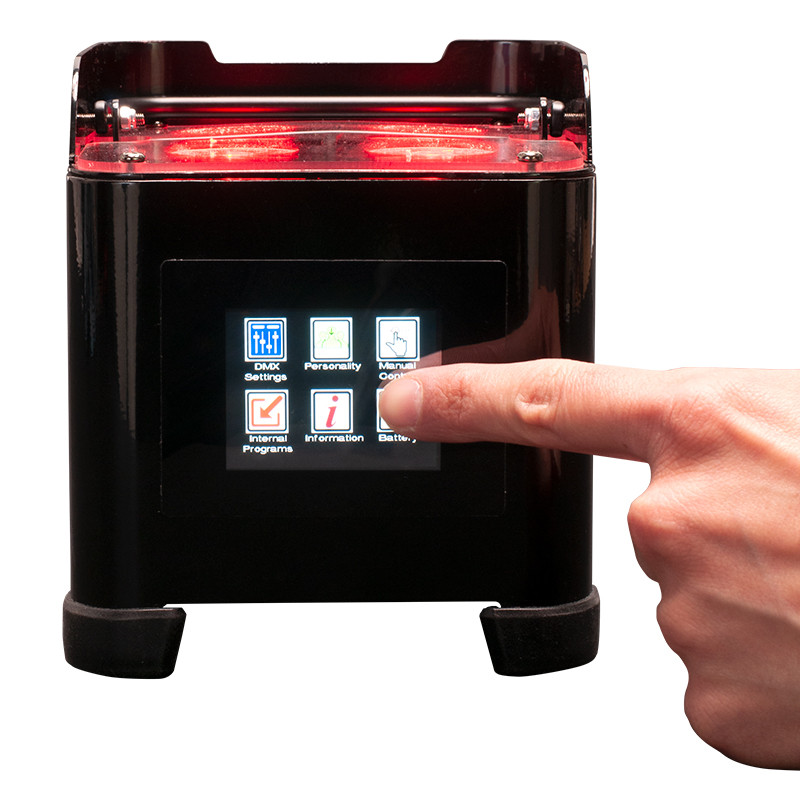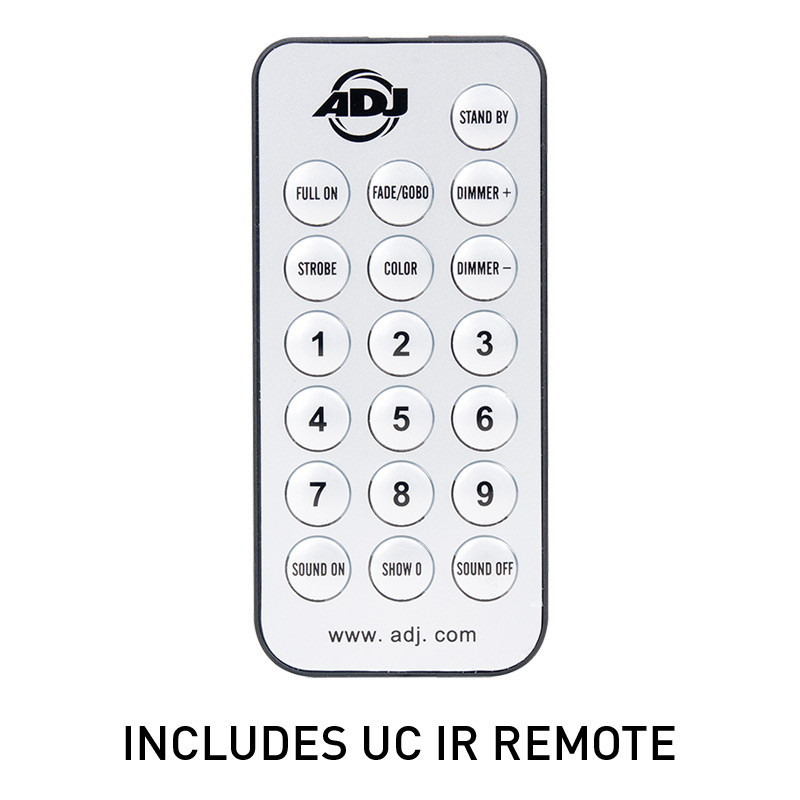 • Built-in WiFLY EXR wireless DMX: Up to 2,500 feet (760M) when used with ADJ’s WiFLY EXR Battery Transceiver